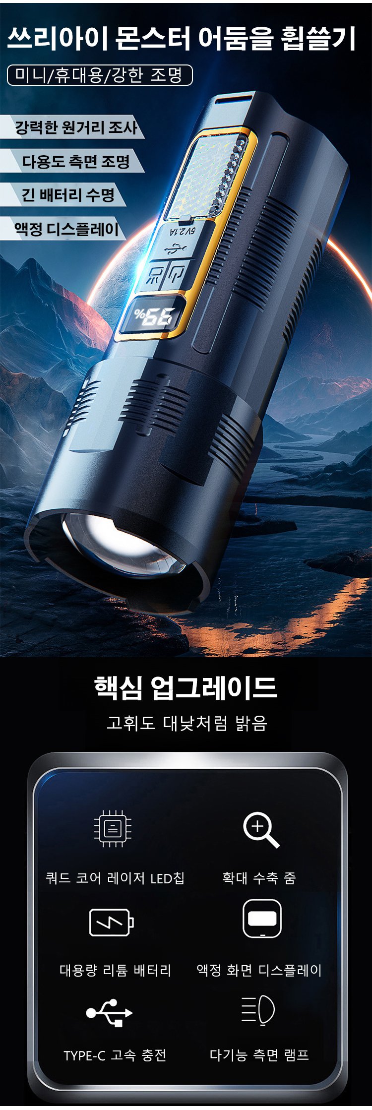 신형 고휘도 미니 강광 손전등 캠핑 랜턴